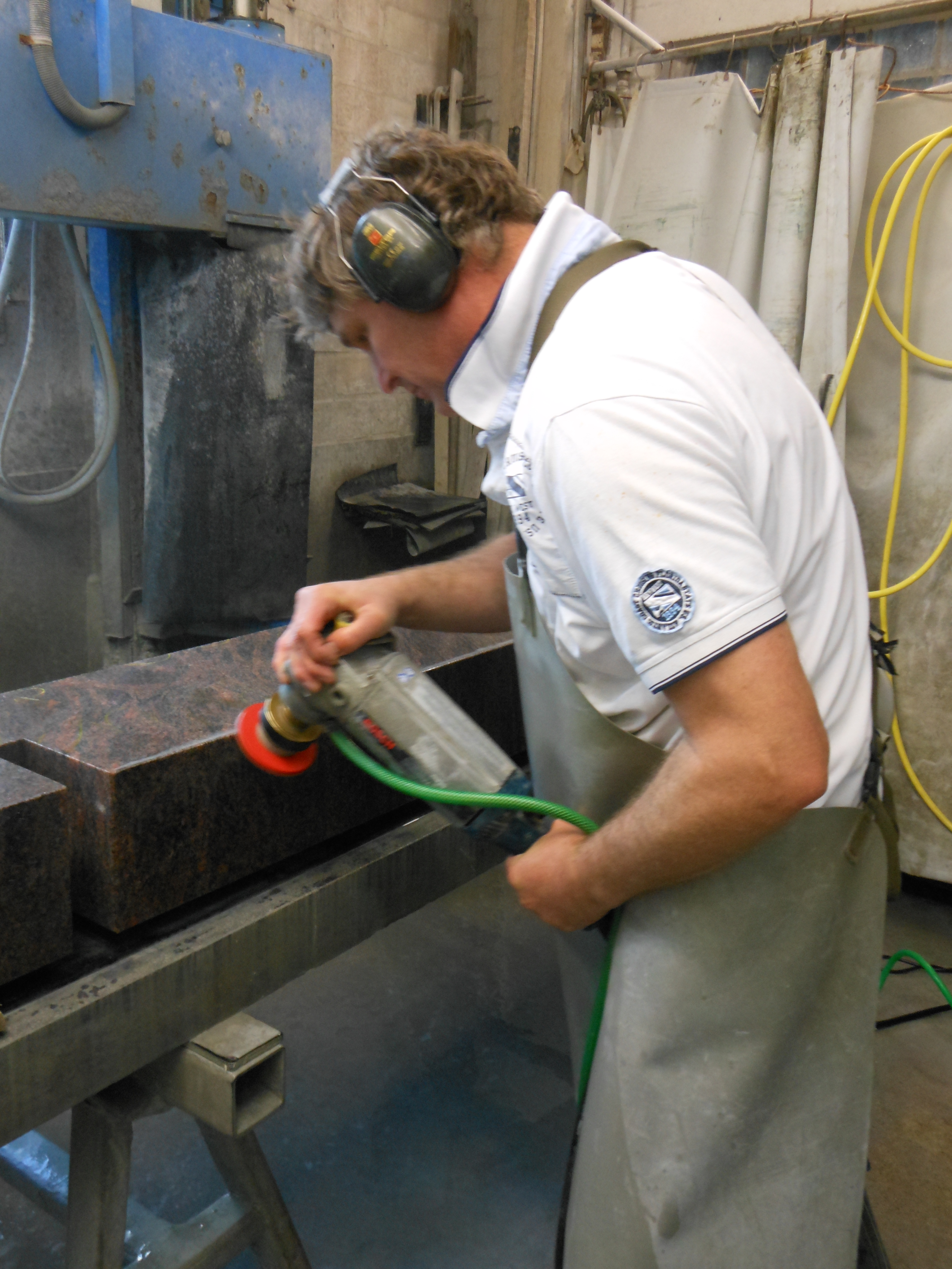 Durch unsere technische Ausstattung können wir Denkmalentwürfe , Einfassungen usw. selbst zuschneiden und schleifen.